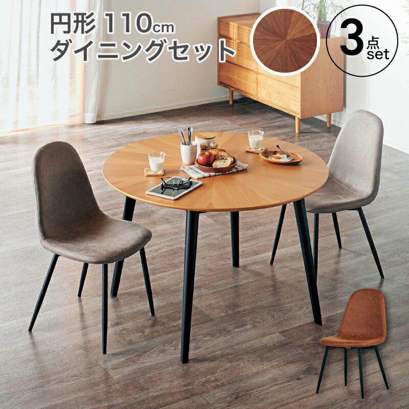 くつろぎの木製ダイニングテーブル 110cm円形 ダイニングテーブル3点セット (110cm丸テーブル+チェア2脚)