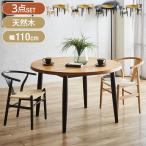 ダイニングセット 天然木 円形 3点セット ダイニングテーブル 幅110 オーク無垢 アジャスター付き 木脚 ダイニングチェア ペーパーコード 北欧風 代引不可