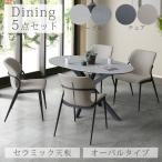 ダイニングテーブルセット 140cm幅 セラミックテーブル オーバルタイプ おしゃれ シンプル ダイニング 5点セット 4人掛け 幅140 セラミック 強化ガラス スチール
