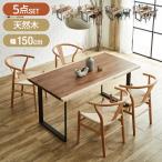 ダイニング 5点セット テーブル チェア 4脚 木製 天然木 デスク 机 椅子 いす イス 在宅 リモート 学習 勉強 事務 カフェ 食卓 北欧 living&dining エムール