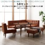 こたつもソファも高さ調節ヴィンテージリビングダイニング BELAIR ベレール 5点セット(テーブル+ソファ1脚+アームソファ1脚+チェア1脚+ベンチ1脚) 左アーム W135