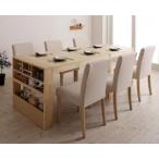 無段階に広がる スライド伸縮テーブル ダイニングセット 6人 7点セット(テーブル+チェア6脚) シェルフタイプ W120-200