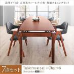 ダイニングセット 7点セット テーブル + チェア6脚 W140-240 北欧 天然木ウォールナット材 伸縮ダイニングセット