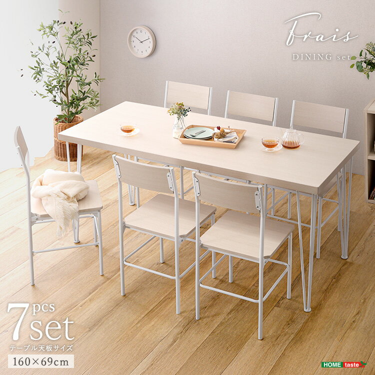 \早い者勝ち!10%OFFクーポン配布/ さわやかな背もたれ付きオシャレダイニング7点セット 椅子 机 ダイニング ダイニングテーブル 食卓 セット ダイニングセット 家具 インテリア ナチュラル シンプル 大家族 白 ホワイト ホワイトオーク お手入れ簡単