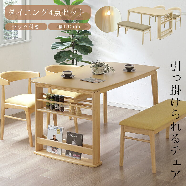 7%offクーポン 11日迄◆ダイニングテーブルセット 4人掛け 4点セット 135cm 木製 テーブル 長方形 ダイニングセット ダイニング ダイニングテーブル 食卓テーブルセット 食卓 肘付き チェア チェアー ベンチ ダイニングベンチ 4点 ナチュラル おしゃれ エディ ルシア