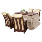 ダイニングこたつテーブル 椅子掛け布団付き6点セット 高さ調節 600Wヒーター コタツ 炬燵 机 回転キャスターチェア4脚