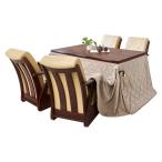 ダイニングこたつテーブル 椅子掛け布団付き6点セット 高さ調節 600Wハロゲン薄型温風ヒーター コタツ 炬燵 机 回転チェア4脚