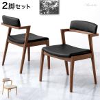 ダイニングチェア 2脚セット 完成品 無垢 木製 北欧 おしゃれ PVC ファブリック ブラック グレー シンプル ウォールナット材 肘付き アルガIIIA