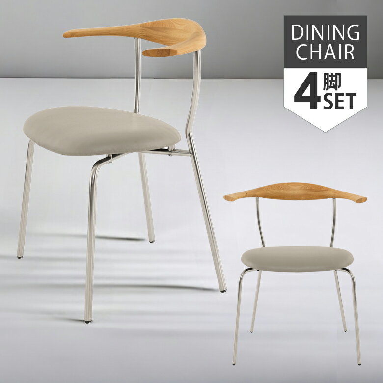 \全商品に使える10%offクーポン/ ダイニングチェア 4脚セット おしゃれ モダン 食卓椅子 チェア 幅65cm スタイリッシュ シャープ ステンレス オーク材 無垢材 削り出し PVCレザー 合成皮革 椅子 イス いす chair ブラウン