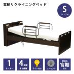 電動ベッド 宮付き 介護ベッド シングルベッド 1モーター ベッドフレーム 介護用 ダークブラウン コンセント LEDライト シングル