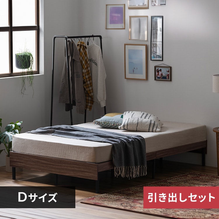 ウッドスチールベッド 引き出しセット ダブル SBW01-D/SB-WHK 全2色