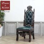 ダイニングチェア シングルチェア アンティーク ロココ調家具 バロック 王宮スタイル 豪華 ハイグレード 本革 ブラックレザー 6110-8l17