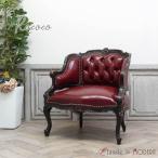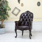 アームチェア アンティーク ロココ調家具 一人掛け ビンテージ レトロ クラシック レザー 本革 1014-5l7126b-a