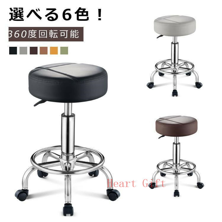 「10%OFFクーポン配布中」スツール キャスター付き 椅子 回転椅子 丸椅子 丸イス チェア 昇降式 エステスツール 360度回転可能 極厚 レザー調 フットケアイス 回転チェ