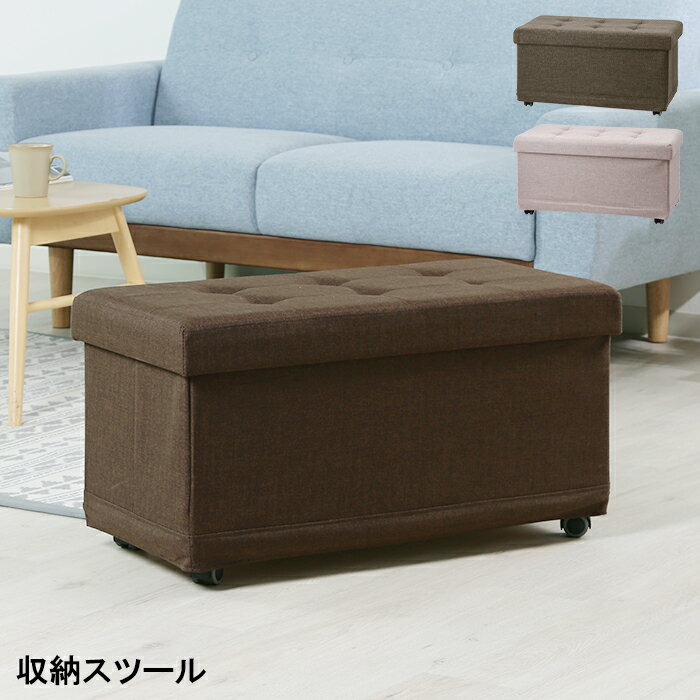 【楽天スーパーSALE10%OFF】スツール 収納 キャスター付き 76×38cm 長方形 収納スツール ワイド 収納スツール 収納ボックス ボックススツール 腰掛け ベンチ オットマン W76cm スツール 北欧 収納 ボックス キャスター ファブリック 玄関 チャコ