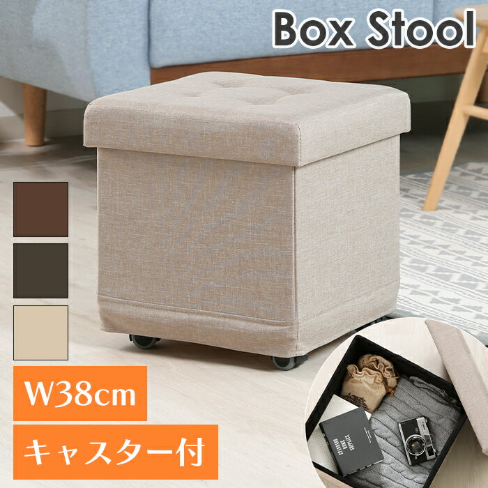 【楽天スーパーSALE10%OFF】【値下げSALE】スツール 収納 キャスター付き 38×38cm 正方形 収納スツール 収納ボックス ボックススツール W38cm スツール 腰掛け オットマン 北欧 収納 ボックス キャスター ファブリック 折りたたみ 玄関 チャコ