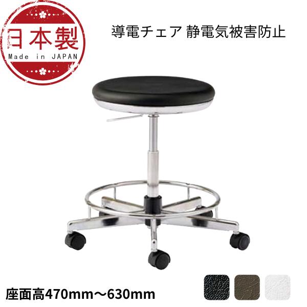 導電チェア 作業スツール 作業用 椅子 ガス上下調節 キャスター付き TMS型チェア 背パイプ無 足掛けリング付 TSM-EH25L-Z ウレタン座 工場イス 医療用イス 工場用スツール