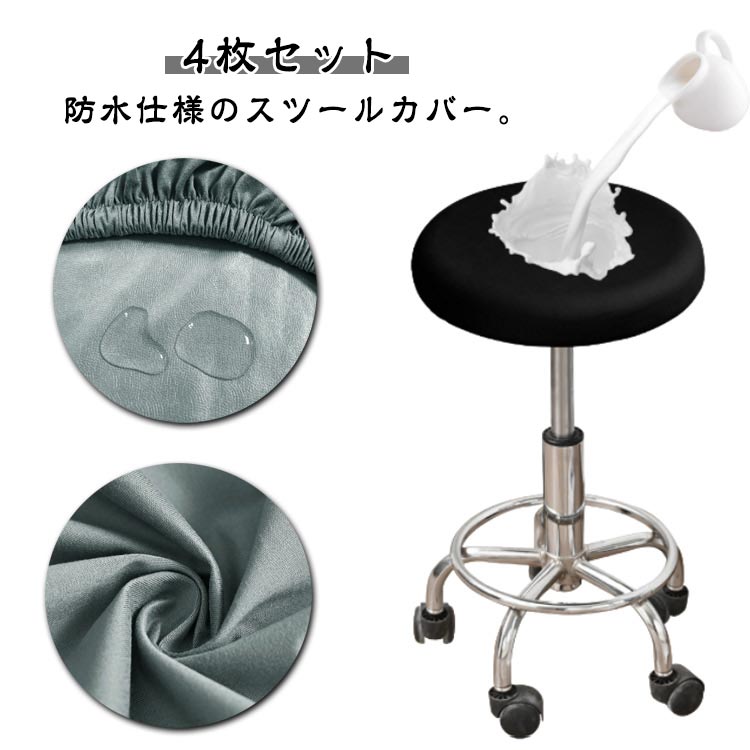 【4枚セット】スツールカバー 防水 チェアカバー 丸椅子カバー キャスター付き椅子 回転椅子カバー イスカバー 伸縮性 座面カバー ストレッチ 単色