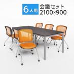 法人様限定 6人用 会議セット 会議テーブル 2100×900 + メッシュ スタッキング チェア キャスター付き 肘なし 6脚セット MTS2190-3159-6