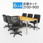 法人様限定 会議テーブルセット 6人用 テーブル チェア 会議テーブル 2100×900 レザーチェア ディレット ローバック キャスター付き 6脚セット