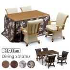 ダイニングこたつ 6点セット 幅135×85cm 回転チェア 肘付き キャスター付き 布団セット 継ぎ脚付き UV塗装 4人用 ナチュラル色・ブラウン色