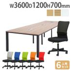 法人限定 会議テーブル セット チェア 幅3600×奥行1200mm 6人用 ワークテーブル 会議用テーブル 会議 オフィス ミーティングテーブル オフィス家具 DRT-S2
