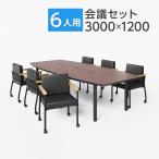 【法人様限定】【6人用 会議セット】会議用テーブル 3000×1200 + ソファーチェア ハイバック ラクシア2【6脚セット】ミーティングテーブルセット 会議テーブルセット 会議テーブル テーブル チェア 幅300cm 300×120