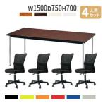 法人限定 会議用テーブル チェア セット 幅1500mm 4人用 ミーティングテーブル 会議セット 会議チェア 長机 会議室 打ち合わせ 木製 業務用 AK-1575TM-S3