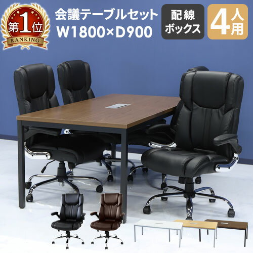 【ビジネス割10%OFF&1200円OFFクーポン9/26-10/24】 【法人限定】 会議用テーブル チェア セット ミーティングテーブル 幅1800mm 会議セット 4人用 会議チェア 長机 会議室 打ち合わせ 商談 業務用 GLM-1890H-S5