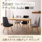 北欧 家具 ダイニング 北欧風 回転チェア 回転式 ダイニング家具 ダイニングセット 5点セット(テーブル+チェア4脚) ナチュラル W150