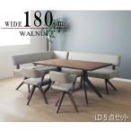 コーナーダイニング 5点セット 大きいサイズ 幅180cm 背付きベンチチェアー 回転式アーム ヴィンテージ調 PVC 合皮 ビンテージ おしゃれ モダン 北欧 カウチ