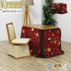 こたつテーブル こたつ3点セット 長方形 ハイタイプ 幅90cm 3点セット こたつ布団 こたつ椅子 回転式