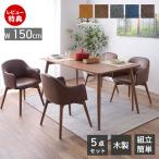 (豪華2大特典) ダイニングテーブルセット 4人掛け 5点セット 幅150cm ダイニング チェア 回転式 肘付き セット 木製 カラメリ 東谷