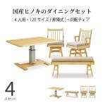 ダイニングテーブルセット 4人掛け ベンチ 北欧 幅120cm 木製 4点セット ヒノキ 国産 節 回転 ダイニングチェア ベンチスタイル 昇降式