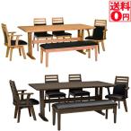 ダイニング6点セット コバ テーブル180+肘有回転x2+肘無チェアx2+ベンチ125