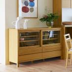 食器棚 カップボード ガラスキャビネット チェスト 引き出し 開梱設置配送 幅145cm オーク材 オーク無垢材 木製 引き出しがスライドレール付きで使いやすい