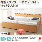 (タイムセール中) (お客様組立) 大容量収納付きチェストベッド ワイドK200(S×2) マットレス付き 薄型スタンダードポケットコイル A+Aタイプ