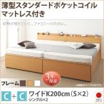 (タイムセール中) (お客様組立) 大容量収納付きチェストベッド ワイドK200(S×2) マットレス付き 薄型スタンダードポケットコイル B+Cタイプ