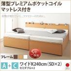 (タイムセール中) (お客様組立) 大容量収納付きチェストベッド ワイドK240(SD×2) マットレス付き 薄型プレミアムポケットコイル A+Cタイプ