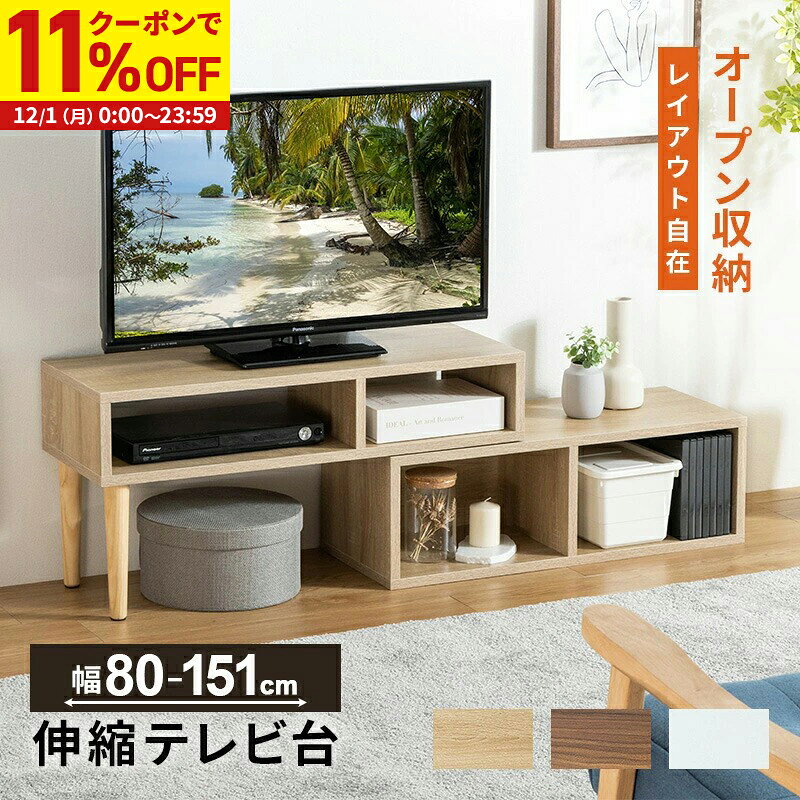 【11%OFFクーポン配布中★12/1に使える】 テレビ台 テレビボード コーナー ローボード 伸縮 幅80 幅151 おしゃれ 白 テレビラック TV台 木製 北欧風 TVボード テレビ台 42インチ 32インチ ホワイト ナチュラル ウォルナット