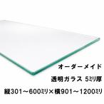 サイズオーダー 透明ガラス板 5ミリ厚 縦301〜600mm×横901〜1200mm 小口磨き テーブル天板 棚板 机 タイヤに DIY オーダーカット 一般的なガラス色 受注生産