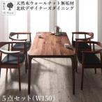 天然木ウォールナット無垢材北欧デザイナーズダイニング W.K. ダブルケー 5点セット(テーブル+チェア4脚) W150[00]
