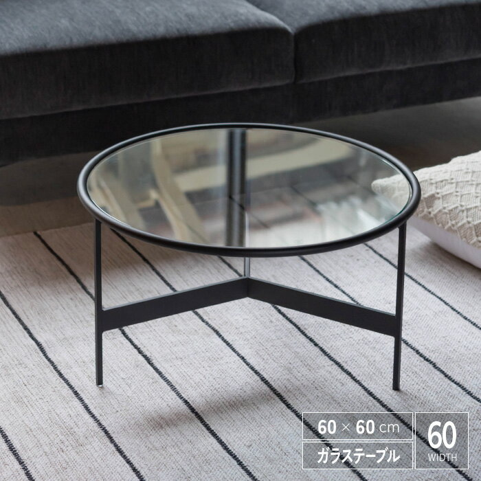 センターテーブル ガラス 丸 円形 60cm 丸型 おしゃれ コンパクト 完成品 アイアン脚 ブラック シンプル モダン デザイナーズ家具風 ガラス天板 リビングテーブル