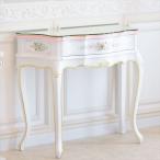 コンソールテーブル 姫系 ロココ調 クラシック フレンチカントリー 白家具 アンティーク風 デスク 花柄 ハンドペイント 猫脚 引き出し付き GMK QSM-220