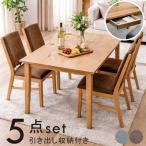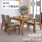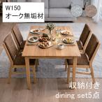 ダイニングセット 4人掛け 北欧 幅150cm 収納 引き出し オーク無垢 テーブル チェア4脚 5点