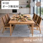 ダイニングセット 6人 幅180 北欧 6人掛け 収納 引き出し オーク無垢 テーブル チェア6脚 7点 木製