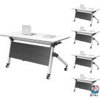会議用テーブル 折りたたみ、フリップモバイルトレーニングテーブル、ロックホイールと金属棚付きコンピュータテーブル5個、折りたたみ式、簡単に保管できる直線