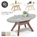 センターテーブル 楕円 幅90cm 高さ40cm オーバル ローテーブル メラミン化粧板 メラミン天板 石目調 天然木 木製 クロス脚 おしゃれ お手入れ簡単 北欧 モダン