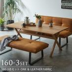 ダイニングテーブルセット 160cm 3点セット 4人 オーク天然木 クロス脚 背付ベンチ ソファダイニング レザーファブリック ベンチ スチール脚
