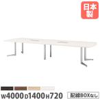 法人送料無料 会議用テーブル 幅4000×奥行1400mm ワイヤリングBOXなし ボート型テーブル ミーティングテーブル テーブル オフィス家具 事務所 USV-4014B